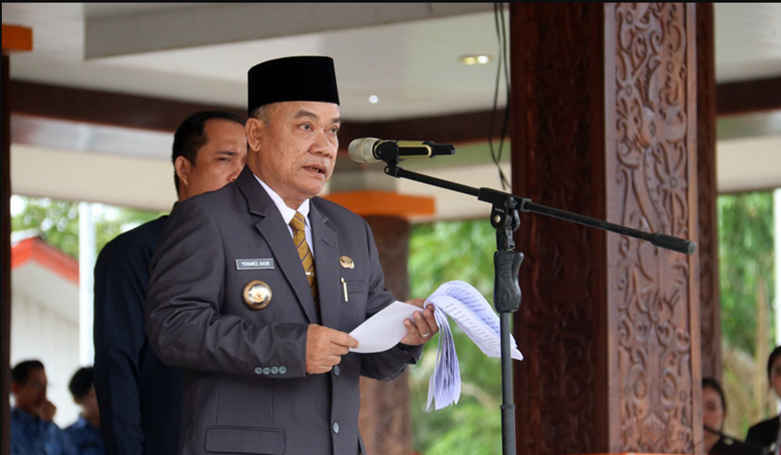 Bupati Mahakam Ulu (Mahulu), Drs. Bonifasius Belawan Geh, S.H., M.E., di dampingi Wakil Bupati Mahulu, Drs. Yohanes Avun, M.Si., menghadiri Upacara Peringatan Hari Ulang Tahun…