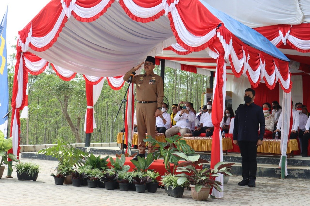 Kepala Otorita Ibu Kota Nusantara Bambang Susantono memimpin Peringatan Hari Ulang Tahun ke-77 Republik Indonesia di Titik Nol Ibu Kota Nusantara pada Rabu (17/8/2022).