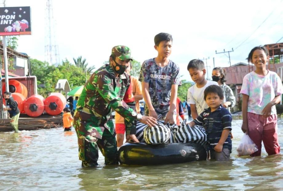 Kodim 0912/KBR Siagakan Personel Antisipasi Banjir Susulan di Wilayah Kutai Barat