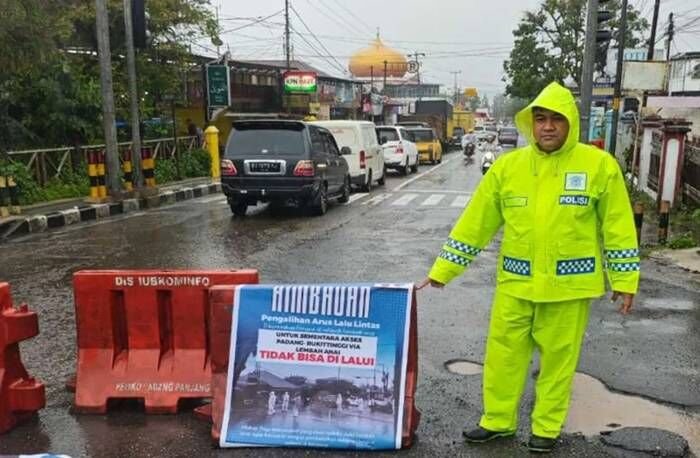 Kepolisian Resor Kota Padang Panjang, Sumatera Barat, menutup akses jalan menuju Lembah Anai akibat longsor di kawasan tersebut.