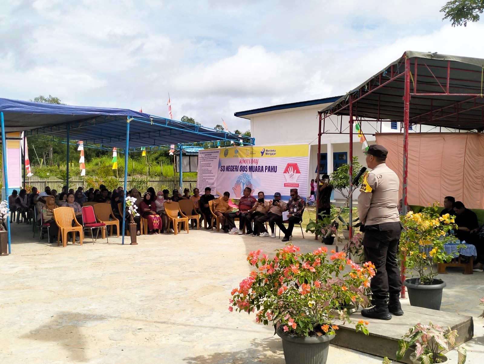 Deklarasi Anti Perundungan dan Roots Day, Anggota Polsek Muara Pahu Beri Pesan ke Pelajar SMPN 02 Gunung Bayan