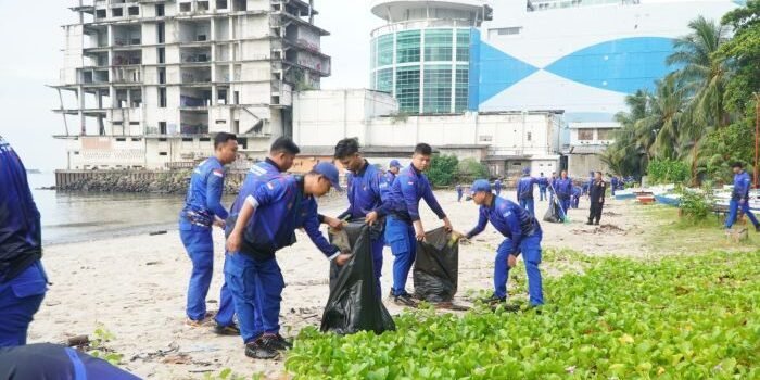 Ditpolairud Polda Kaltim bersama Pusdal LH dan Mahasiswa FH Uniba Gelar Aksi Bersih-Bersih Pantai Segara