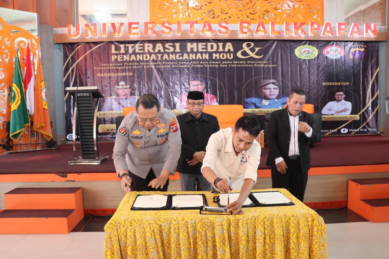 Polda Kaltim gelar Literasi Media Dan Penandatanganan Memorandum of Understanding (MoU) dengan KPID Provinsi Kaltim di Kampus Universitas Balikpapan (Uniba) Balikpapan, Senin (16/10/2023).