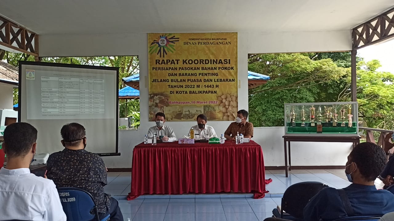 Pemerintah Kota (Pemkot) Balikpapan melalui Dinas Perdagangan (Disdag) Kota Balikpapan menggelar rapat koordinasi mengenai Persiapan Pasokan Bahan Pokok