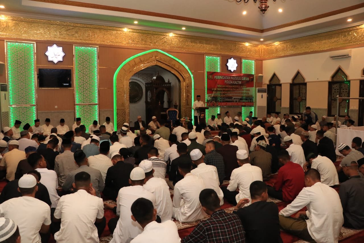 Polda Kalimantan Timur memperingati peristiwa malam Nuzulul Qur'an di Masjid Al-Ikhlas Mapolda Kaltim pada Senin Malam (10/04/2023).