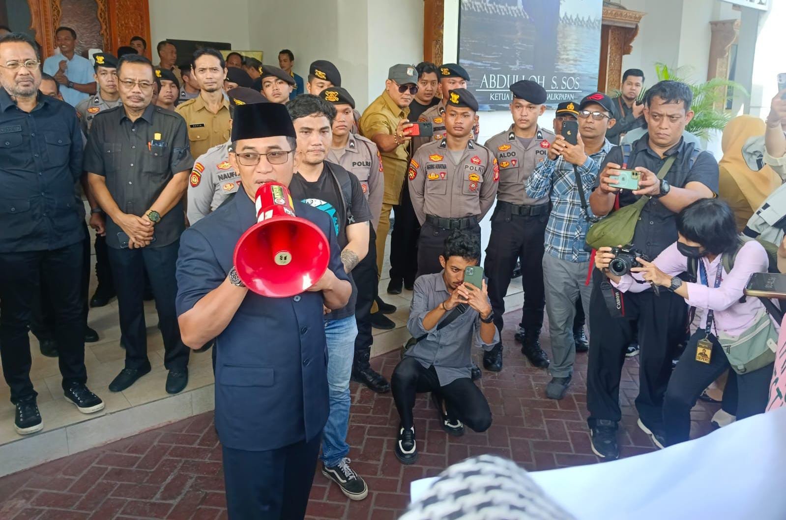 Wali Kota Balikpapan, H Rahmad Mas'ud menemui para jurnalis Balikpapan saat melakukan orasi penolakan revisi Undang-undang Nomor 32 Tahun 2002 tentang Penyiaran, di depan Kantor…
