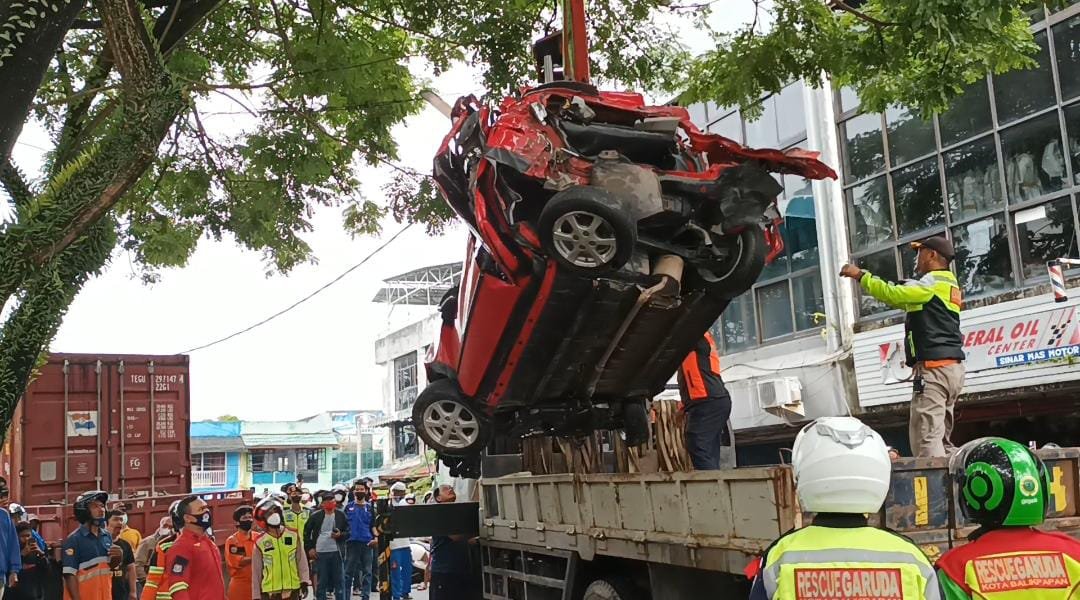 Pengendara Mobil Ayla berwarna merah bernopol KT 1887 NT bersama istri dan seorang anak menjadi salah satu korban dalam kecelakaan lalu lintas (Lantas) di simpang…