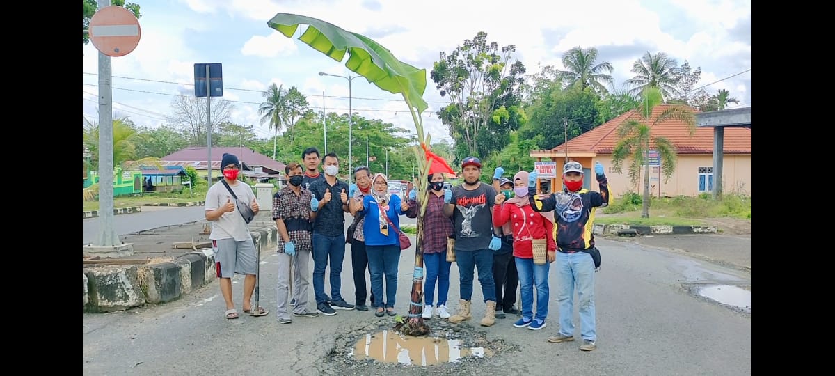 Kesal Jalan Rusak Tak Kunjung Diperbaiki, Warga di Kubar Tanam Pohon Pisang di Tengah Jalan Raya