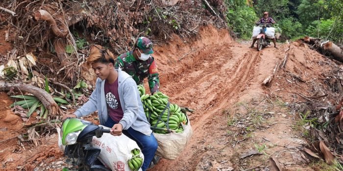 Babinsa 1002-01/ Birayang Tinjau Lokasi Longsor dan Bantu Warga