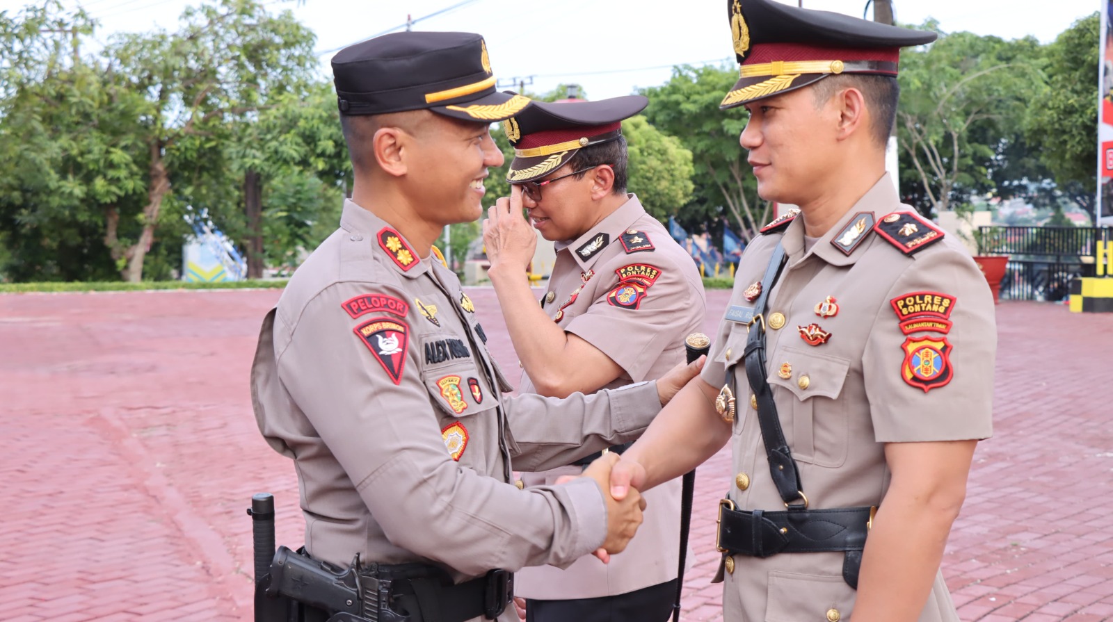 Kapolres Bontang AKBP Alex F L Tobing memimpin upacara serah terima jabatan Wakapolres Bontang dan Kapolsek Bontang Barat, Senin (5/2/2024) pukul 16.00 wita