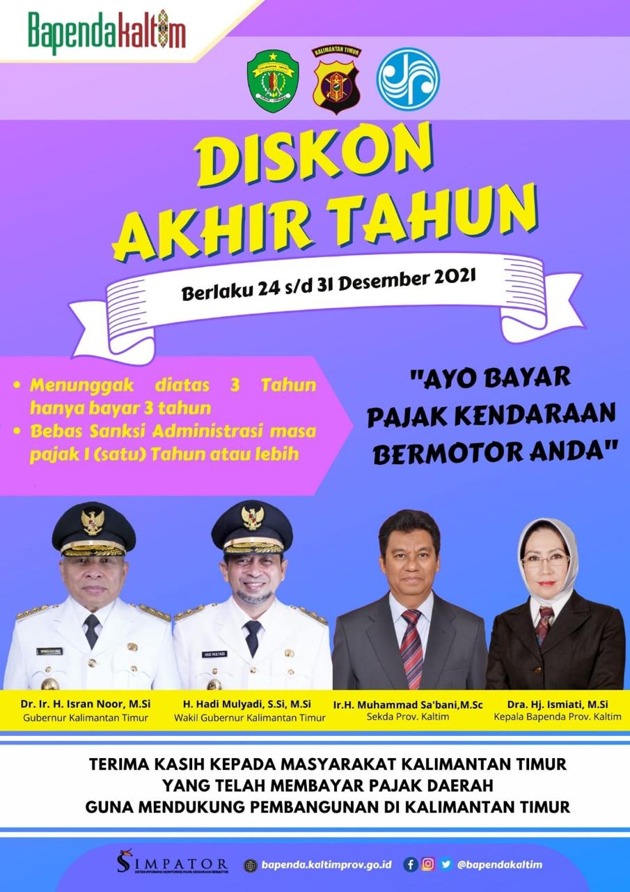 Menjelang akhir tahun 2021, program diskon pajak kendaraan kembali dikeluarkan pemerintah provinsi melalui Badan Pendapatan Daerah (Bapenda) Provinsi Kalimantan Timur (Kaltim).
