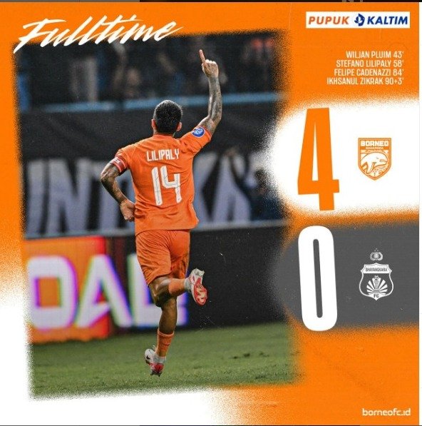 Borneo FC Taklukkan Bhayangkara FC 4-0 di Stadion Batakan Balikpapan