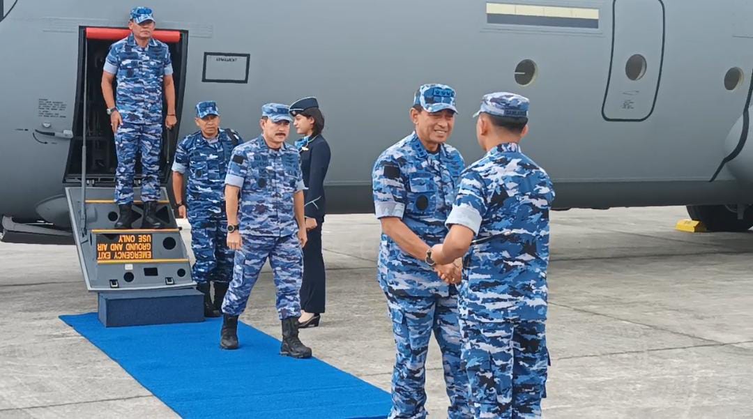 Wakil Kepala Staf Angkatan Udara (Wakasau), Marsdya TNI Andyawan Martono tiba di Base Ops Lanud Dhomber Kota Balikpapan, dengan menggunakan pesawat Hercules C-130 J-30/A-1344, pada…