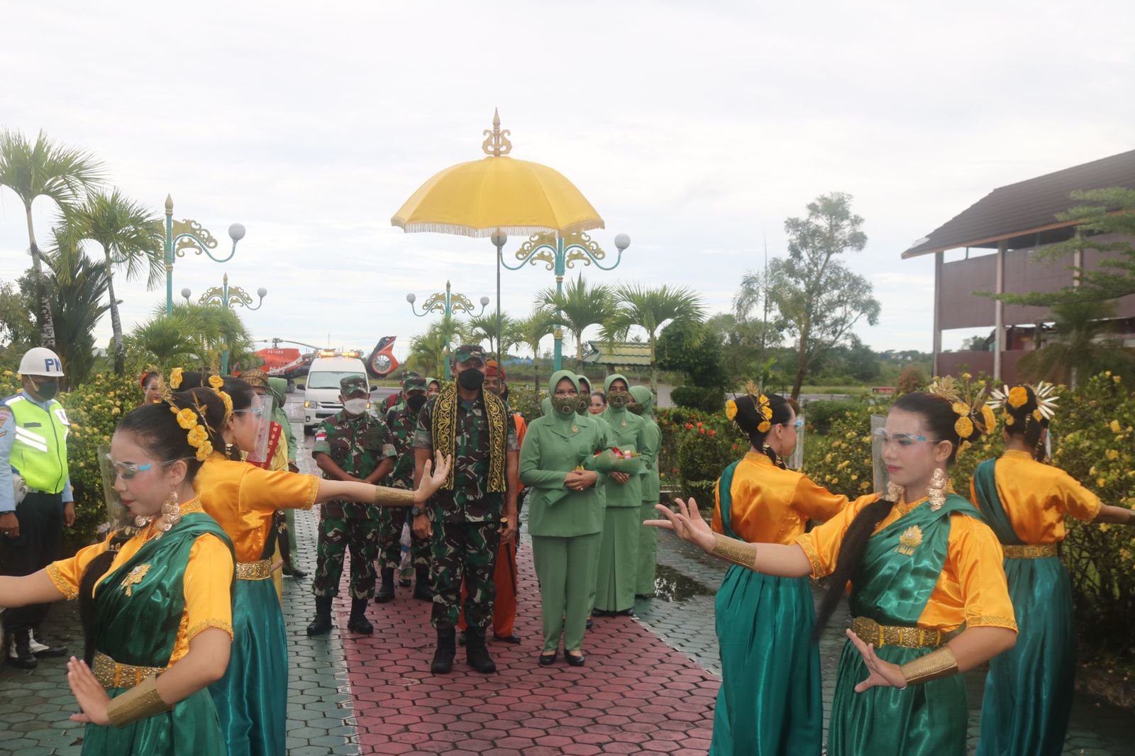Didampingi Ketua Persit KCK PD VI/Mlw Ny. Dewi Teguh Pudjo Rumekso, Pangdam VI/Mulawarman Mayjen TNI Teguh Pudjo Rumekso, M.Tr (Han) mengunjungi Kodim 0907/Trk, Rabu (1/12/2021).