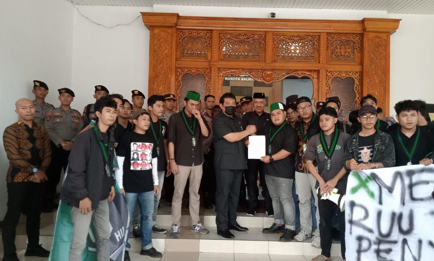 Ketua Dewan Perwakilan Rakyat Daerah (DPRD) Kota Balikpapan Abdulloh bersama Wakil Ketua I DPRD Balikpapan Budiono menemui para mahasiswa Himpunan Mahasiswa Islam (HMI) Cabang Balikpapan,…