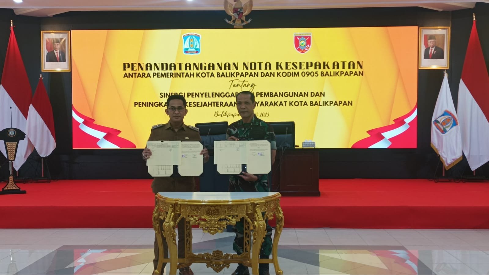 Kodim 0905/Balikpapan melakukan penandatanganan nota kesepakatan dengan Pemerintah Kota (Pemkot) Balikpapan, terkait sinergi penyelenggaraan pembangunan dan peningkatan kesejahteraan masyarakat Kota Balikpapan.