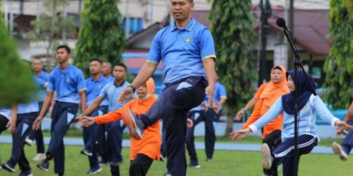 Komandan Lanud Dhomber Kalimantan Timur (Kaltim) Kolonel Pnb Sidik Setiyono, S.E., M.Han didampingi Ketua Yasarini Pengurus Cabang Lanud Dhomber Nyonya Lina Sidik Setiyono