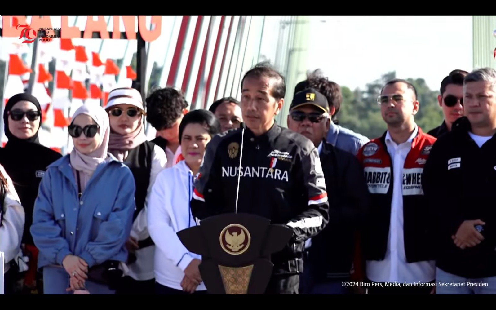 Presiden Joko Widodo meresmikan Jembatan Pulau Balang di Kabupaten Penajam Paser Utara, Kalimantan Timur, pada Minggu (28/7/2024).