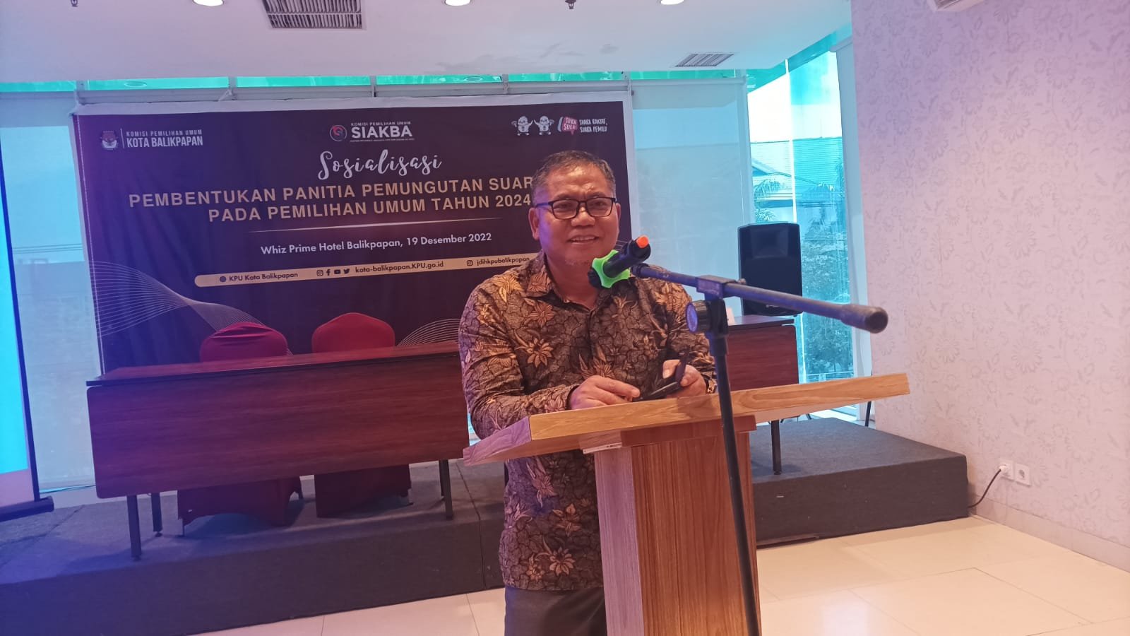 Komisi Pemilihan Umum (KPU) Kota Balikpapan menggelar Sosialisasi Pembentukan Panitia Pemungutan Suara (PPS) pada Pemilihan Umum (Pemilu) Tahun 2024, di Ballroom Hotel Whiz Prime Balikpapan,…