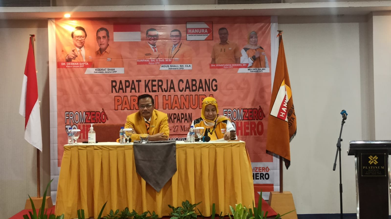 Tahap awal Dewan Pimpinan Cabang (DPC) Partai Hanura Balikpapan untuk mempersiapkan para kader dengan menggelar Rapat Kerja Cabang (Rakercab), di Hotel Platinum Balikpapan, Minggu (27/3/2022).