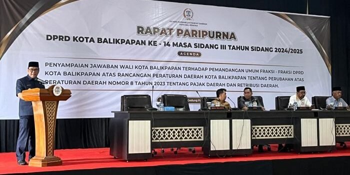 Dewan Perwakilan Rakyat Daerah (DPRD) Kota Balikpapan menggelar Rapat Paripurna Ke-8 Masa Sidang II Tahun 2024/2025 di Hotel Grand Senyiur Balikpapan, pada hari Senin (14/4/2025).