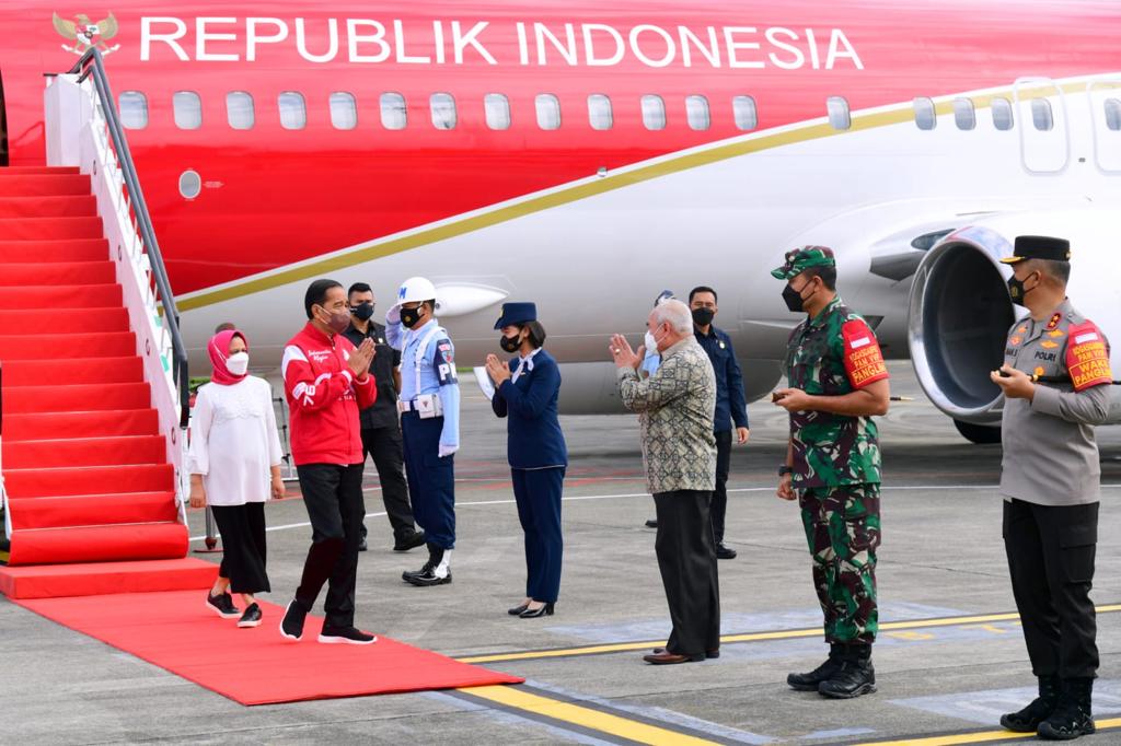 Presiden Joko Widodo (Jokowi) didampingi Istri Iriana Joko Widodo bertolak menuju Provinsi Kalimantan Timur (Kaltim) untuk melakukan kunjungan kerja, Minggu (13/3/2022).