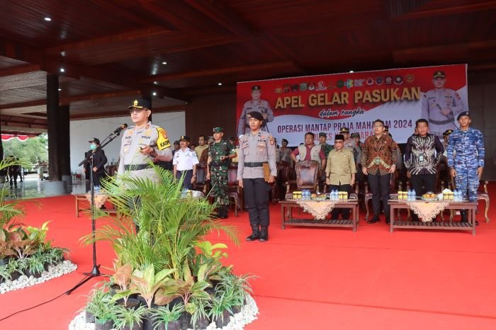 Polres Kutai Barat melaksanakan Apel Gelar Pasukan dalam rangka Operasi Mantap Praja Mahakam 2024, pada Jumat (23/8/2024) pukul 08.00 WITA.