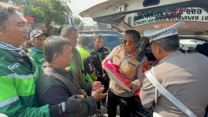 Kapolresta Balikpapan Ajak Ojol Jaga Kamtibmas, Bagikan 50 Karung Beras di Jumat Berkah