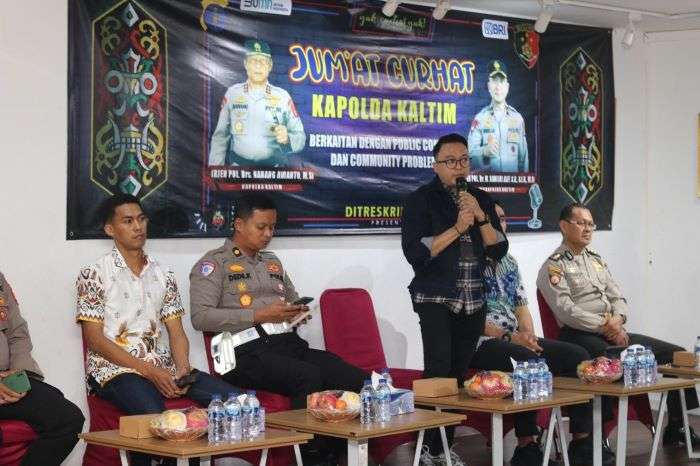 Sebagai upaya memperkuat hubungan dengan warga, Polda Kalimantan Timur (Kaltim) menyelenggarakan kegiatan "Jumat Curhat" yang bertajuk Public Complain dan Community Problems.