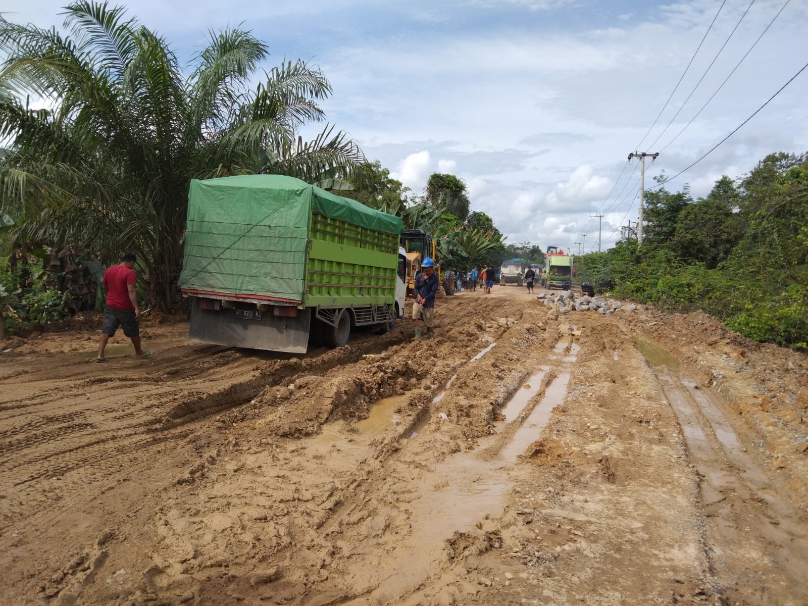 Jalan Poros Kukar-Kubar Rusak Parah, Sebabkan Antrean Panjang dan Terbaliknya Kendaraan