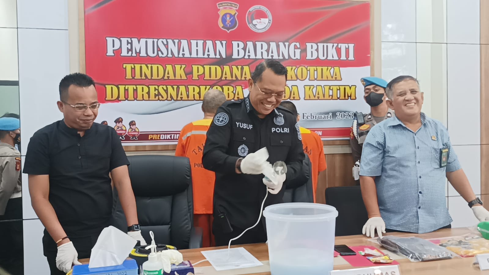 Kepolisian Daerah Kalimantan Timur (Polda Kaltim) memusnahkan barang bukti narkoba jenis sabu seberat 10 Gram, di Ruang Ditresnarkoba Polda Kaltim, pada hari Kamis (2/2/2023).