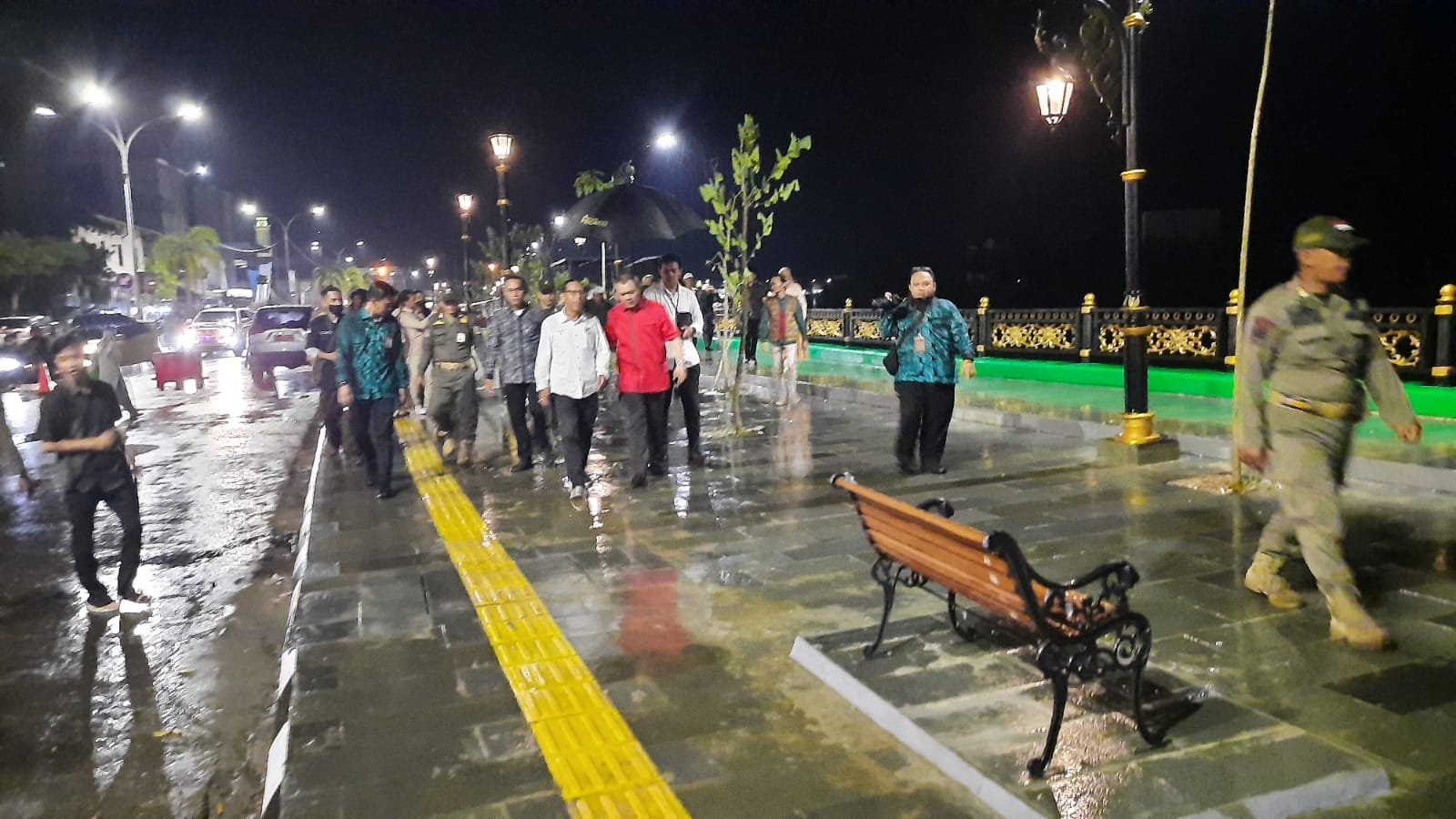 Bupati Paser, dr. Fahmi Fadli, meresmikan Siring Sungai Kandilo dengan menekan tombol sirine dan lampu yang menyala di sekitar siring. Pada Rabu (15/2/2023).