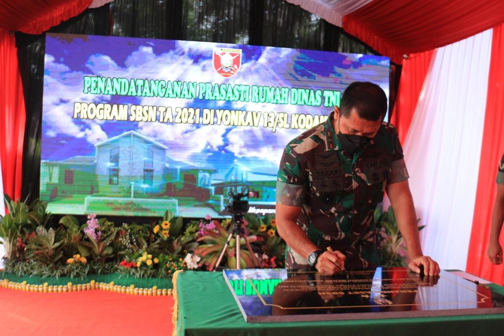 Pangdam VI/Mulawarman Mayjen TNI Teguh Pudjo Rumekso meresmikan bangunan rumah dinas TNI AD di Markas Batalyon Kavaleri 13/Satya Lembuswana di Km. 30 Kelurahan Karya Merdeka, Kecamatan Samboja Kutai Kartanegara Kamis (3/2/2022).