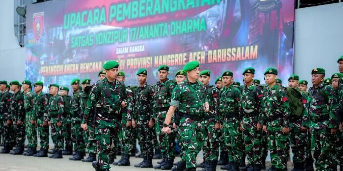 Upacara Pemberangkatan Pangdam VI/Mulawarman Lepas Satgas Yonzipur 17/Ananta Dharma Bantu Percepatan Pemulihan Bencana di Aceh