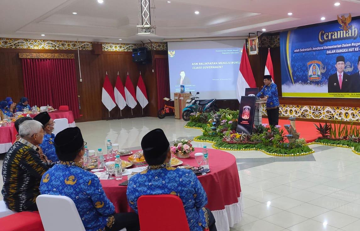 Pemerintah Kota (Pemkot) Balikpapan menggelar ceramah motivasi dengan menghadirkan Sekretaris Jenderal Kementerian Dalam Negeri Suhajar Diantoro.