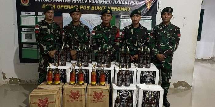 Kembali Satgas Pamtas Yonarmed 5/105 Tarik/PG Gagalkan Penyelundupan Miras
