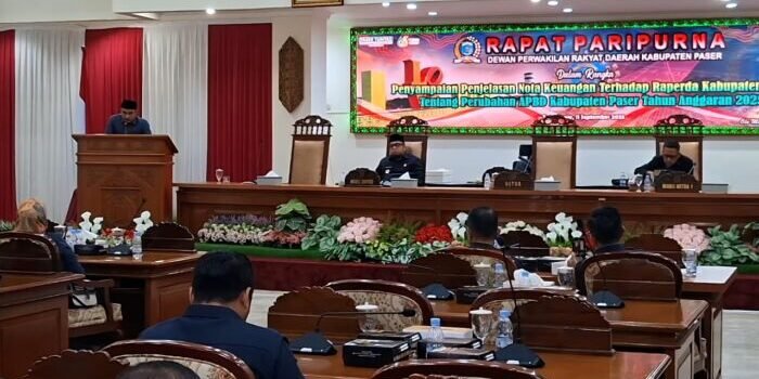 Fraksi Nasional Demokrat (NasDem) DPRD Kabupaten Paser menyampaikan pandangan umum terhadap Nota Keuangan Raperda Perubahan Anggaran Pendapatan dan Belanja Daerah (APBD) Tahun Anggaran 2025 dalam…