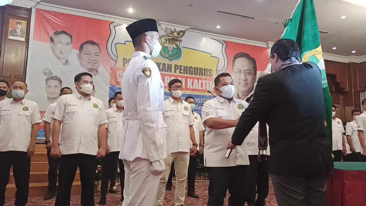Pelantikan Pengurus Persatuan Bulutangkis Seluruh Indonesia (PBSI) Kalimantan Timur (Kaltim) periode 2021-2025 dilakukan oleh Ketua Pengurus Pusat PBSI Agung Firman Sampurna digelar di Ballroom Hotel Grand Senyiur, Sabtu (19/3/2022) malam.