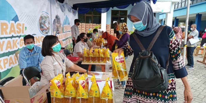Pemerintah Kota (Pemkot) Balikpapan bersama PT Kutai Refinery Nusantara (KRN) melakukan kegiatan Operasi Pasar Minyak Goreng di halaman kantor Kecamatan Balikpapan Barat, Rabu (29/12/2021).