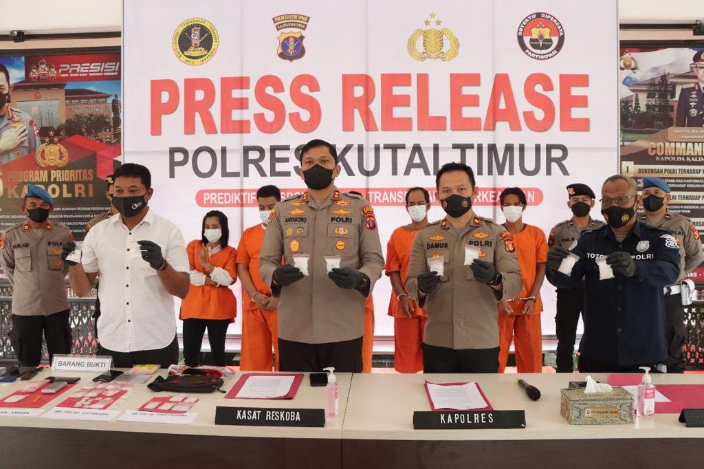 Satreskoba Polres Kutim berhasil bekuk lima orang tersangka pengedar narkoba jenis sabu-sabu di Kabupaten Kutai Timur (kutim), Kalimantan Timur (kaltim).